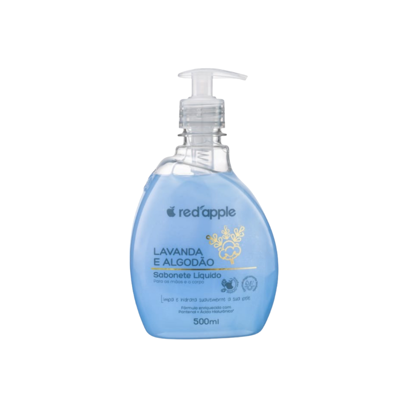 O Sabonete Líquido para o Corpo Lavanda e Algodão 500ml da Red Apple apresenta uma fórmula de alta qualidade, enriquecida com ingredientes ativos, incluindo Ácido Hialurônico e Pantenol, conhecidos por suas propriedades de hidratação profunda e por ajudar a reter a umidade natural da pele. Além de suas propriedades de limpeza eficazes, o produto revitaliza a pele e a deixa macia e sedosa ao toque, com um perfume aveludado e reconfortante de lavanda e algodão que transforma a rotina de banho em um momento de cuidado e tranquilidade. É ideal para uso diário em todos os tipos de pele, respeitando seu pH natural.